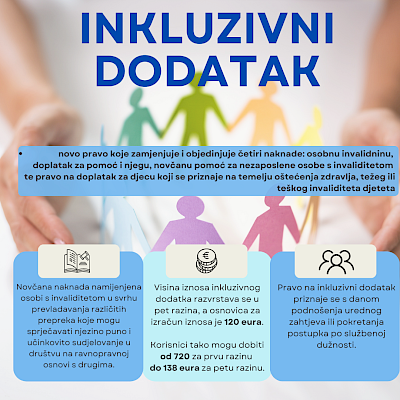 Zakonom o inkluzivnom dodatku koji je stupio na snagu 1. siječnja 2024. godine u pravo na inkluzivni dodatak objedinile su se četiri naknade: osobna invalidnina, doplatak za pomoć i njegu, doplatak za djecu koji se ostvaruje u uvećanom iznosu radi oštećenja zdravlja, težeg ili teškog invaliditeta te novčana pomoć za nezaposlene osobe s invaliditetom.